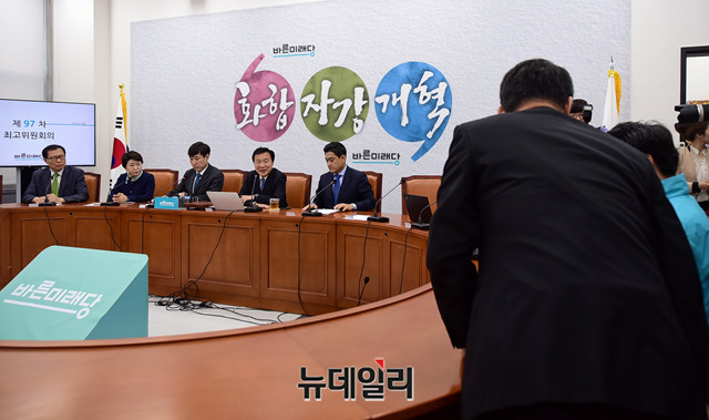 [포토] 바른미래 최고위, 하태경 퇴장요청에 회의장 나서는 임재훈