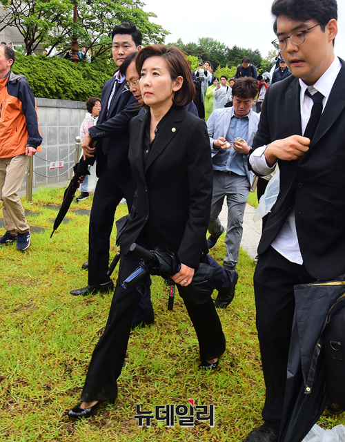 나경원 자유한국당 원내대표가 18일 오전 광주 북구 국립5·18민주묘지에서 열린 제39주년 5·18민주화운동 기념식에 참석하기 위해 입장 하고 있다. (광주=이종현기자)
