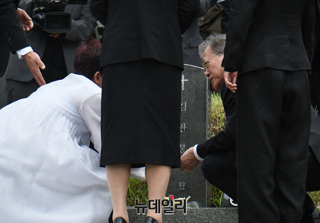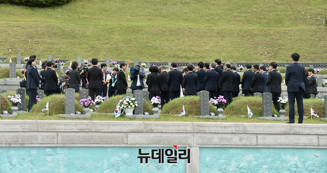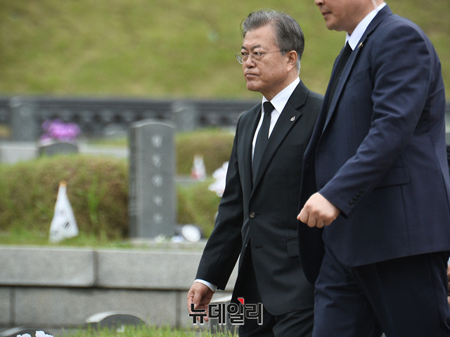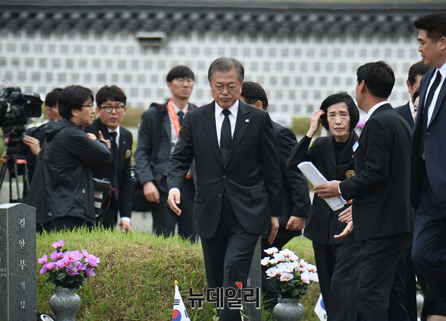 문재인 대통령이 18일 오전 광주 북구 국립5.18민주묘지에서 열린 제39주년 5.18광주민주화운동 기념식에 참석한 후 묘역을 둘러보고 있다.(광주=박성원 기자)
