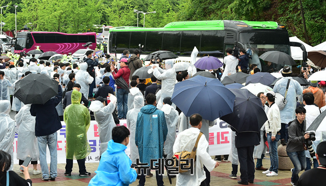 황교안 자유한국당 대표가 18일 오전 광주 북구 국립5·18민주묘지에서 열린 제39주년 5·18민주화운동 기념식에 참석하기 위해 차량에서 내리고 있다. (광주=이종현기자)