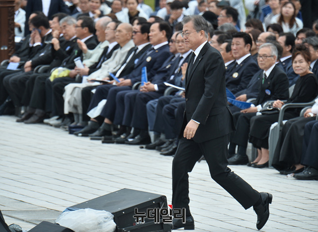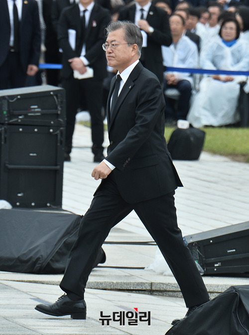 문재인 대통령이 18일 오전 광주 북구 국립5.18민주묘지에서 열린 제39주년 5.18광주민주화운동기념식에서 기념사를 하기 위해 입장하고 있다. (광주=박성원 기자)
