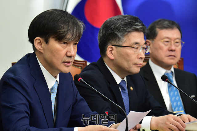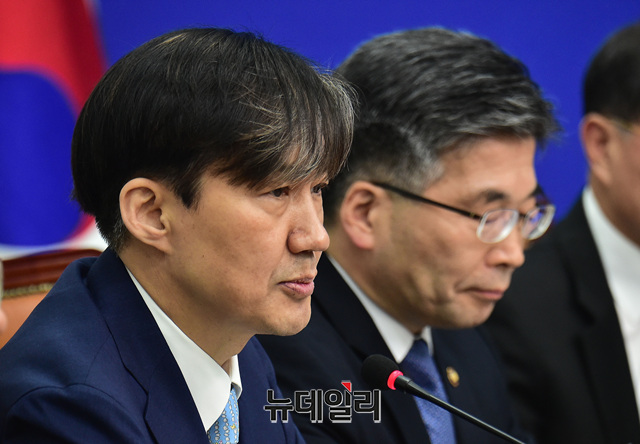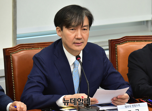 조국 청와대 민정수석이 20일 오전 국회 더불어민주당 당대표실에서 열린 경찰개혁의 성과와 과제 당정청 협의에서 모두발언을 하고 있다.