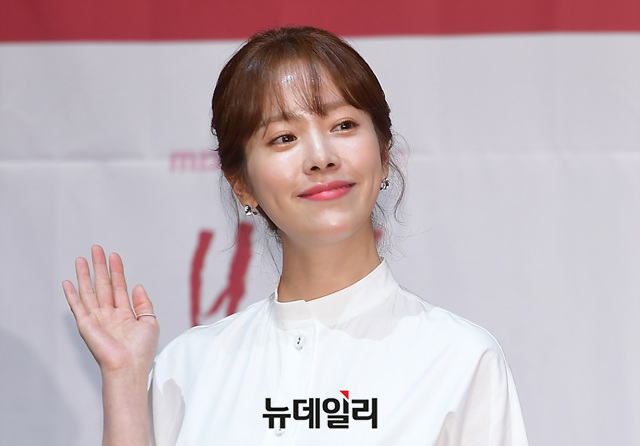 배우 한지민이 20일 오후 서울 구로구 라마다 서울 신도림에서 열린 드라마 '봄밤(극본 김은, 연출 안판석)' 제작보고회에서 포토타임을 갖고 있다. 봄밤은 배우 정해인과 한지민이 사랑을 찾아가는 이야기를 담은 로맨스 드라마. 오는 22일 밤 9시 첫 방송.