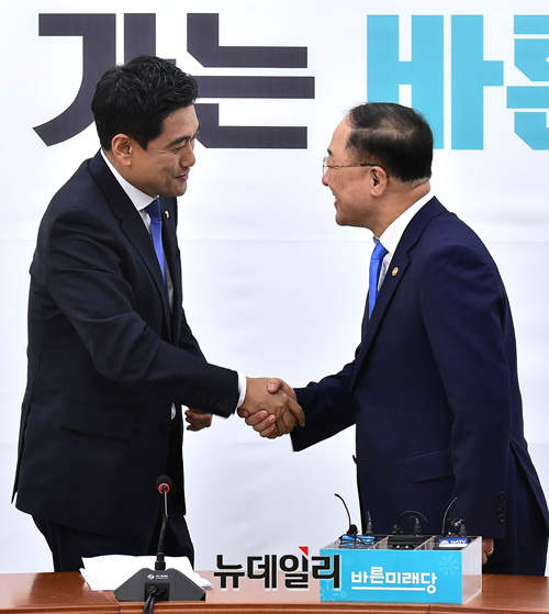 [포토] 바른미래당 찾은 홍남기 경제부총리