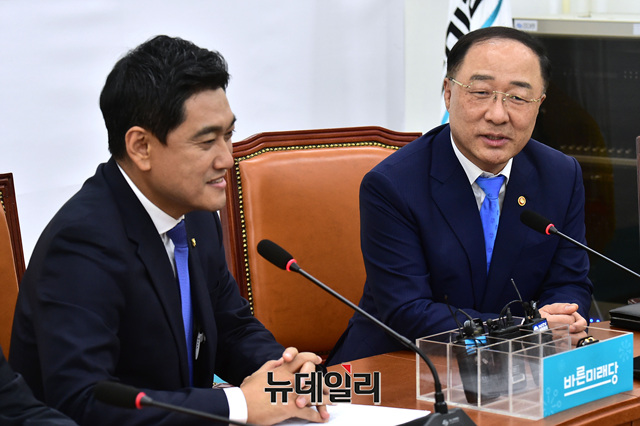 [포토] 환담 나누는 오신환-홍남기