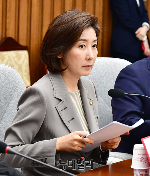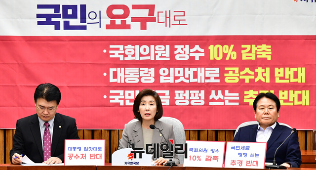 나경원 자유한국당 원내대표가 21일 오전 국회에서 열린 원내대책회의에서 모두발언을 하고 있다.