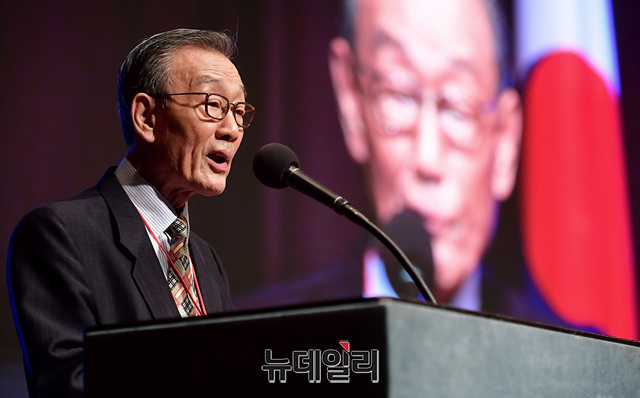 노재봉 전 국무총리가 21일 오후 서울 용산구 그랜드하얏트서울 호텔에서 열린 '한·미자유우호의밤(US·ROK Freedom Friendship Night)' 행사에서 인사말을 하고 있다.