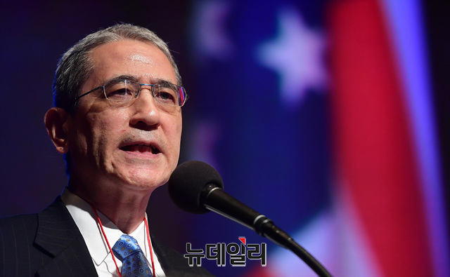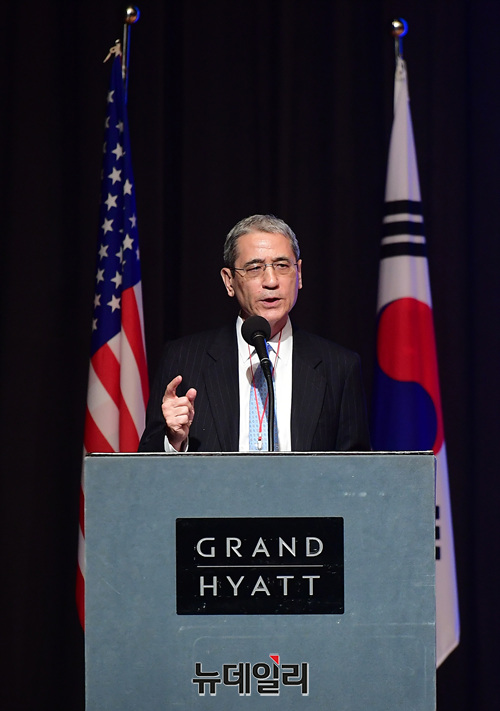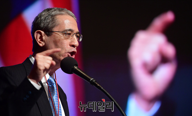 '고든 창(Gordon G. Chang)' 미국 변호사가 21일 오후 서울 용산구 그랜드하얏트서울 호텔에서 열린 '한·미자유우호의밤(US·ROK Freedom Friendship Night)' 행사에서 '한국의 자유와 민주주의의 상실'을 주제로 강연을 하고 있다.이날 행사에서 각 주제별로 진행된 강연은 △경제정책(이병태) △외교정책(김영호) △안보정책(신원식) △미디어언론(김진) △국회의몰락(이언주) △헌법의붕괴(이정훈) △시민운동창출(조평세) △미국보수주의연합(댄 슈나이더) △한국의 자유와 민주주의의 상실(고든 챙) 등이 나섰다.'한·미자유우호의밤'은 한국과 미국의 리더들이 한미동맹의 가치와 북한해방, 시민사회단체의 우호증진을 위해 한국자유회의와 NEW INSTITUTE 등 50여개 시민사회단체가 공동으로 주최한 행사다.