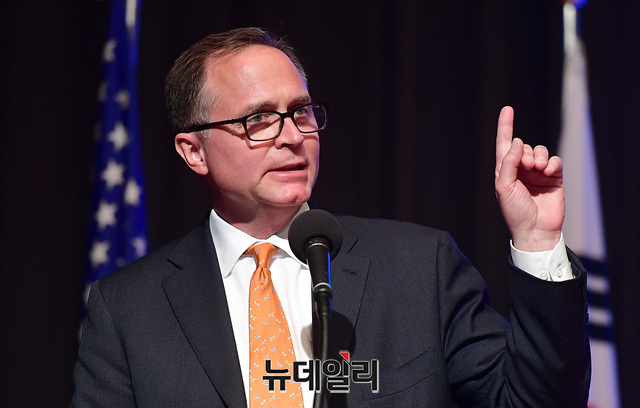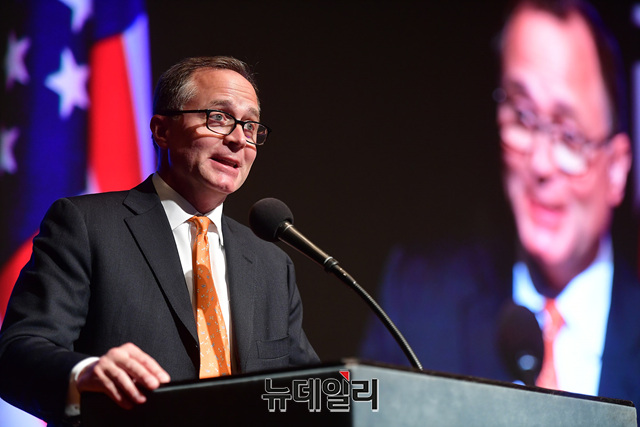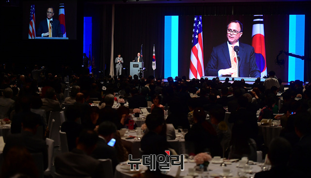 '댄 슈나이더(Dan Schneider)' 미국보수주의연합(ACU) 상임이사가 21일 오후 서울 용산구 그랜드하얏트서울 호텔에서 열린 '한·미자유우호의밤(US·ROK Freedom Friendship Night)' 행사에서 '미국보수주의연합:사명과 비전'을 주제로 강연하고 있다.이날 행사에서 각 주제별로 진행된 강연은 △경제정책(이병태) △외교정책(김영호) △안보정책(신원식) △미디어언론(김진) △국회의몰락(이언주) △헌법의붕괴(이정훈) △시민운동창출(조평세) △미국보수주의연합(댄 슈나이더) △한국의 자유와 민주주의의 상실(고든 챙) 등이 나섰다.'한·미자유우호의밤'은 한국과 미국의 리더들이 한미동맹의 가치와 북한해방, 시민사회단체의 우호증진을 위해 한국자유회의와 NEW INSTITUTE 등 50여개 시민사회단체가 공동으로 주최한 행사다.