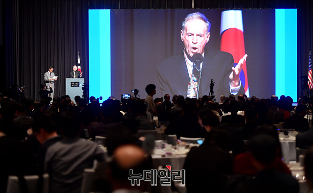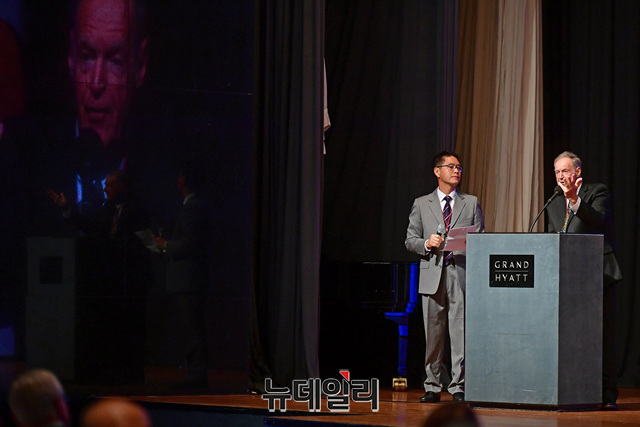 '앤드류 크릴리(Andrew Crilly)' 뉴인스티튜드(New Institute) 공동설립자 겸 대표가 21일 오후 서울 용산구 그랜드하얏트서울 호텔에서 열린 '한·미자유우호의밤(US·ROK Freedom Friendship Night)' 행사에서 환영사를 하고 있다.이날 행사에서 각 주제별로 진행된 강연은 △경제정책(이병태) △외교정책(김영호) △안보정책(신원식) △미디어언론(김진) △국회의몰락(이언주) △헌법의붕괴(이정훈) △시민운동창출(조평세) △미국보수주의연합(댄 슈나이더) △한국의 자유와 민주주의의 상실(고든 창) 등이 나섰다.'한·미자유우호의밤'은 한국과 미국의 리더들이 한미동맹의 가치와 북한해방, 시민사회단체의 우호증진을 위해 한국자유회의와 NEW INSTITUTE 등 50여개 시민사회단체가 공동으로 주최한 행사다.