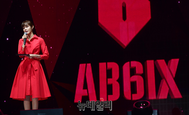 통역사 안현모가 22일 오후 서울 송파구 올림픽홀에서 열린 아이돌그룹 'AB6IX(에이비식스)'가 쇼케이스에서 멤버들을 소개하고 있다.이번 앨범은 전곡을 멤버들이 직접 작사, 작곡에 참여하고 프로듀싱까지 맡았다. 타이틀곡 'BREATHE'를 포함해 7트랙을 담았다. 음원은 오후 6시에 공개된다.'AB6IX(에이비식스)'는 '브랜뉴보이즈'라는 이름으로 2017년 방송된 프로듀스101 시즌2에 출연해 완성도 높은 자작곡 안무 실력으로 호평을 받았다. 멤버 박우진, 이대휘는 워너원으로 임영민, 김동현은 MXM으로 활동했다. 멤버 전웅이 최종 합류하며 팀이 완성됐다.