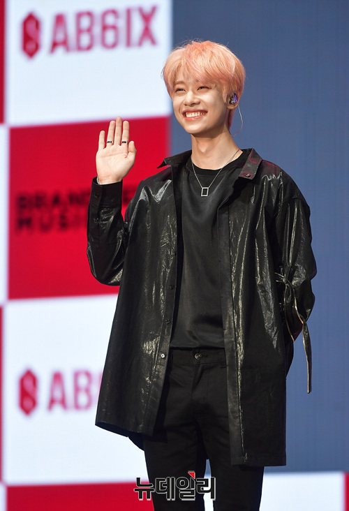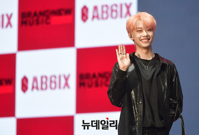 아이돌그룹 'AB6IX(에이비식스)' 멤버 김동현이 22일 오후 서울 송파구 올림픽홀에서 열린 첫번째 EP 앨범 'B:COMPLETE(비:컴플리트)' 쇼케이스에서 포토타임을 갖고 있다.이번 앨범은 전곡을 멤버들이 직접 작사, 작곡에 참여하고 프로듀싱까지 맡았다. 타이틀곡 'BREATHE'를 포함해 7트랙을 담았다. 음원은 오후 6시에 공개된다.'AB6IX(에이비식스)'는 '브랜뉴보이즈'라는 이름으로 2017년 방송된 프로듀스101 시즌2에 출연해 완성도 높은 자작곡 안무 실력으로 호평을 받았다. 멤버 박우진, 이대휘는 워너원으로 임영민, 김동현은 MXM으로 활동했다. 멤버 전웅이 최종 합류하며 팀이 완성됐다.