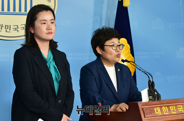 [포토] ILO협약비준 추진 관련 입장 발표하는 임이자·신보라 의원
