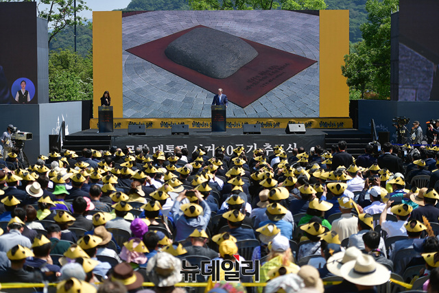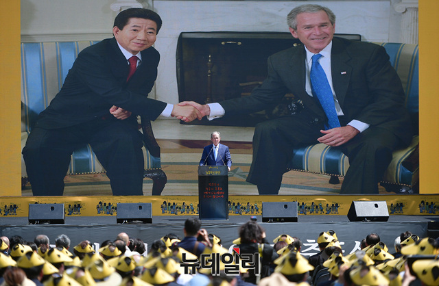 [포토] 노무현 10주기 추도식서 추모사하는 조지 부시 美 전 대통령