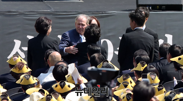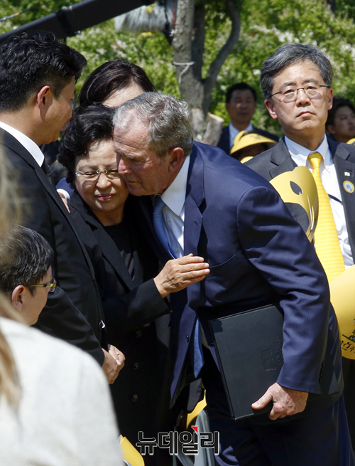 [포토] 권양숙 여사 위로하는 조지 부시 전 대통령