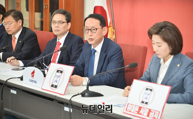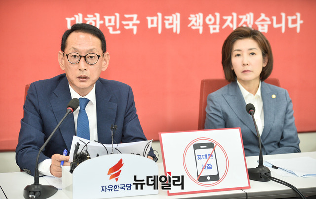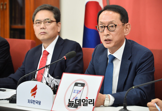 김도읍 자유한국당 의원이 23일 오전 국회에서 열린 청와대 특감반 진상조사단 회의에서 공무원 휴대폰 사찰 관련 발언을 하고 있다.이날 김 의원은 "한국당이 올해 초 외교부 공무원 10여명 '핸드폰 털기'에 대해서 직권남용 권리행사 방해 혐의로 임종석 전 비서실장, 조국 민정수석, 박형철 반부패비서관, 강경화 외교부 장관 등에 대해 수사를 촉구한 적이 있는데, 이러한 사건이 수사 중임에도 불구하고 최근 또 다시 외교부 공무원의 휴대폰 털기를 자행했다"며 청와대를 비판했다.