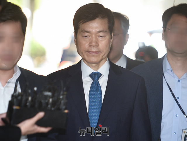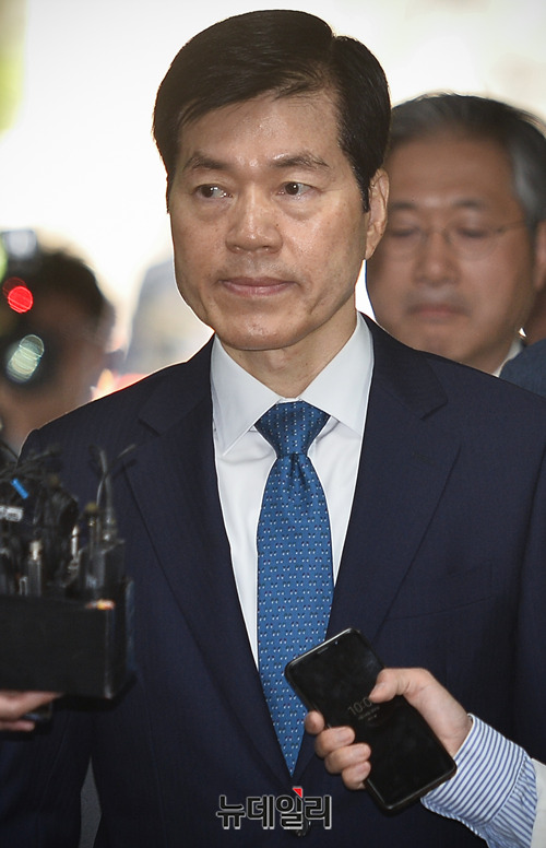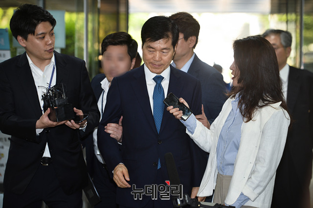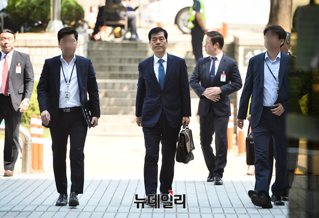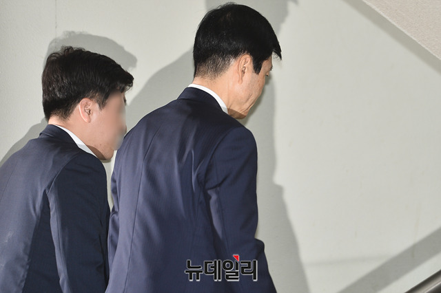 삼성바이오로직스 분식회계 의혹과 관련해 증거인멸 지시 등의 혐의를 받고 있는 김태한 삼성바이오로직스 대표가 24일 오전 서울 서초구 서울중앙지방법원으로 영장실질심사를 받기 위해 입장하고 있다.