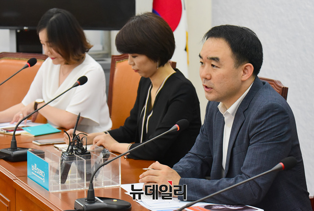 채이배 바른미래당 정책위의장이 24일 국회에서 통일부, 농림축산식품부, 외교부 등 관계부처로부터 대북식량 지원 관련 현안보고를 받기 전 모두발언을 하고 있다.