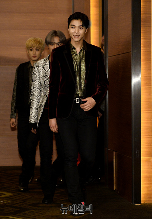 NCT 127(엔시티 127)이 24일 오후 서울 여의도 콘래드호텔에서 열린 네 번째 미니앨범 'NCT #127 WE ARE SUPERHUMAN(NCT #127 위 아 슈퍼휴먼)' 발매기념 제작발표회에 입장하고 있다.이번 앨범의 타이틀곡인 '슈퍼휴먼'은 다양한 EDM 요소가 어우러진 컴플렉스트로 댄스 곡으로, 개인의 잠재력을 깨닫고 긍정의 힘으로 꿈을 이루자는 긍정의 메세지를 담고 있다. 총 6곡으로 구성된 이번 앨범은 오후 6시에 공개된다.