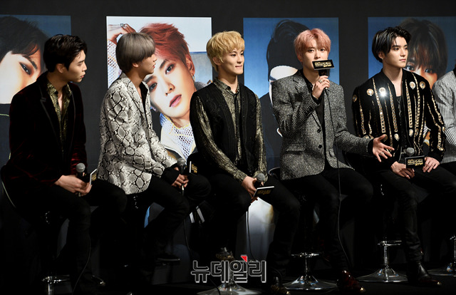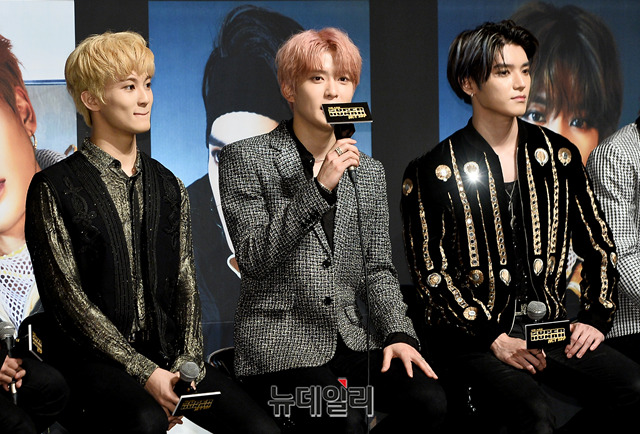 NCT 127(엔시티 127) 재현이 24일 오후 서울 여의도 콘래드호텔에서 열린 네 번째 미니앨범 'NCT #127 WE ARE SUPERHUMAN(NCT #127 위 아 슈퍼휴먼)' 발매기념 제작발표회에서 인사말을 하고 있다.이번 앨범의 타이틀곡인 '슈퍼휴먼'은 다양한 EDM 요소가 어우러진 컴플렉스트로 댄스 곡으로, 개인의 잠재력을 깨닫고 긍정의 힘으로 꿈을 이루자는 긍정의 메세지를 담고 있다. 총 6곡으로 구성된 미니앨범은 오후 6시에 공개된다.