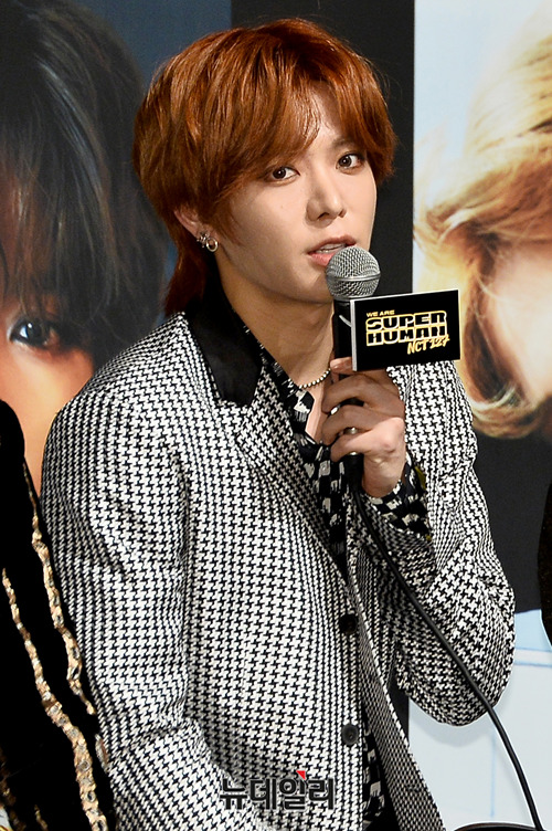 NCT 127(엔시티 127) 유타가 24일 오후 서울 여의도 콘래드호텔에서 열린 네 번째 미니앨범 'NCT #127 WE ARE SUPERHUMAN(NCT #127 위 아 슈퍼휴먼)' 발매기념 제작발표회에서 앨범 설명을 하고 있다.이번 앨범의 타이틀곡인 '슈퍼휴먼'은 다양한 EDM 요소가 어우러진 컴플렉스트로 댄스 곡으로, 개인의 잠재력을 깨닫고 긍정의 힘으로 꿈을 이루자는 긍정의 메세지를 담고 있다. 총 6곡으로 구성된 미니앨범은 오후 6시에 공개된다.