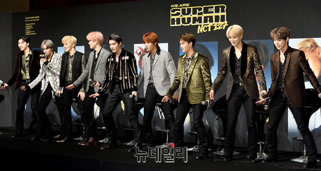 NCT 127(엔시티 127)이 24일 오후 서울 여의도 콘래드호텔에서 열린 네 번째 미니앨범 'NCT #127 WE ARE SUPERHUMAN(NCT #127 위 아 슈퍼휴먼)' 발매기념 제작발표회에서 안무를 짧게 선보이고 있다.이번 앨범의 타이틀곡인 '슈퍼휴먼'은 다양한 EDM 요소가 어우러진 컴플렉스트로 댄스 곡으로, 개인의 잠재력을 깨닫고 긍정의 힘으로 꿈을 이루자는 긍정의 메세지를 담고 있다. 총 6곡으로 구성된 미니앨범은 오후 6시에 공개된다.