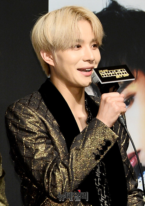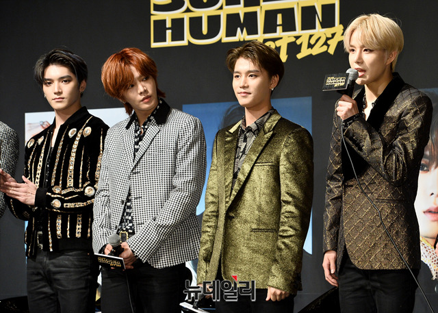 NCT 127(엔시티 127) 정우가 24일 오후 서울 여의도 콘래드호텔에서 열린 네 번째 미니앨범 'NCT #127 WE ARE SUPERHUMAN(NCT #127 위 아 슈퍼휴먼)' 발매기념 제작발표회에서 앨범소개를 하고 있다.이번 앨범의 타이틀곡인 '슈퍼휴먼'은 다양한 EDM 요소가 어우러진 컴플렉스트로 댄스 곡으로, 개인의 잠재력을 깨닫고 긍정의 힘으로 꿈을 이루자는 긍정의 메세지를 담고 있다. 총 6곡으로 구성된 미니앨범은 오후 6시에 공개된다.