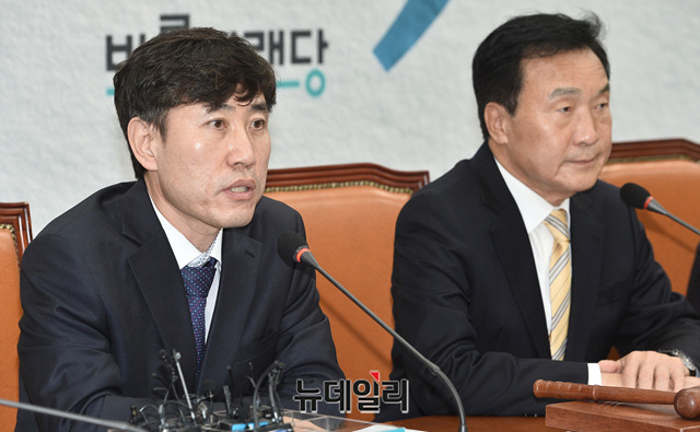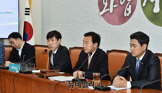 하태경 바른미래당 의원이 27일 오전 국회에서 열린 최고위원회의에서 모두발언을 하고 있다.