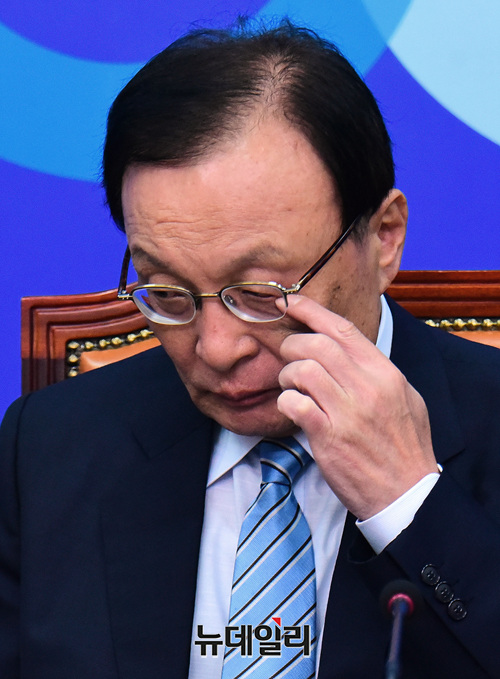 이해찬 더불어민주당 대표가 27일 오전 국회에서 열린 최고위원회의에 참석해 얼굴을 만지고 있다.