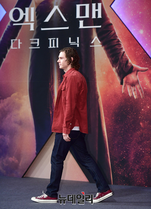 헐리우드 배우 '에반 피터스'가 27일 오전 서울 여의도 콘래드호텔에서 열린 영화 '엑스맨: 다크 피닉스' 내한 기자간담회에서 포토타임을 갖고 있다.