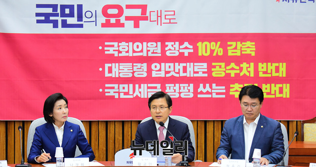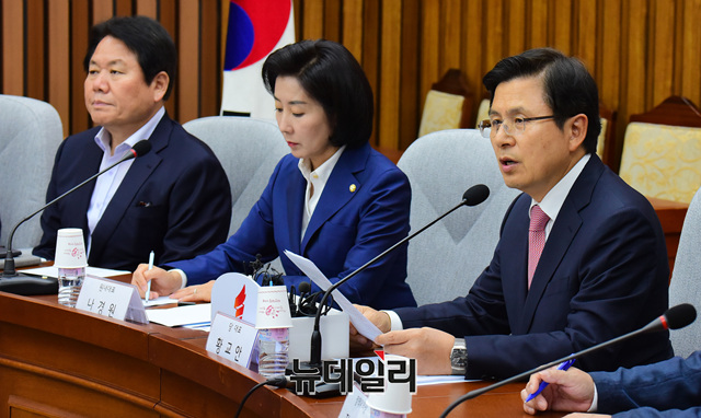 황교안 자유한국당 대표가 27일 오후 국회에서 열린 당대표 주재 상임위원장·간사단 연석회의에서 모두발언을 하고 있다.