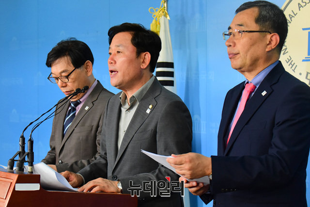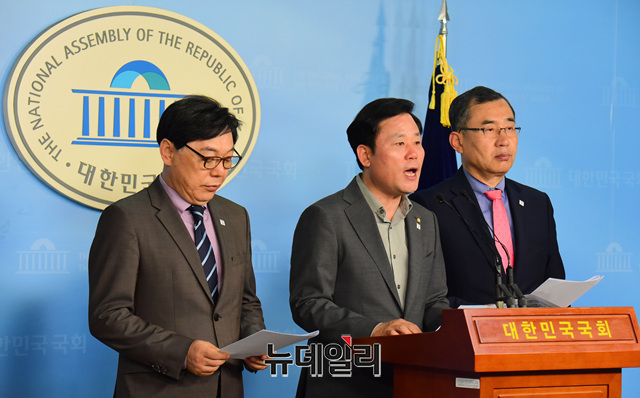 송갑석 더불어민주당 의원이 28일 오전 국회 정론관에서 '2019 광주 세계수영선수권대회' 북한 선수단 참여 요청 기자회견을 하고 있다.