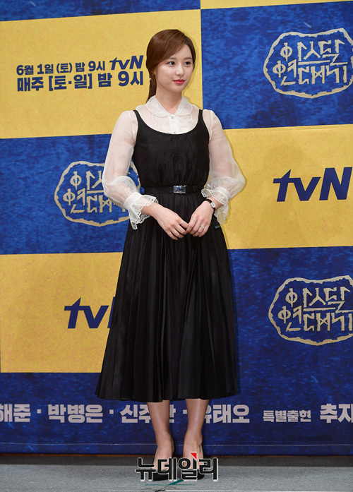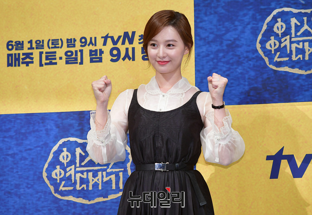 배우 김지원이 28일 오후 서울 강남구 임피리얼팰리스 호텔에서 열린 tvN 토일드라마 '아스달 연대기(연출 김원석, 극복 김영현 박상연)' 제작발표회에서 포토타임을 갖고 있다.