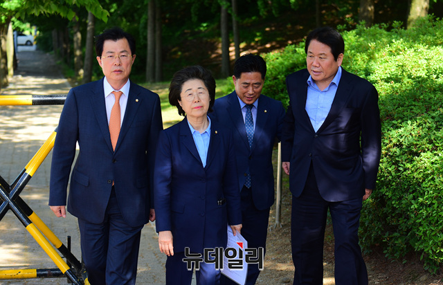 [포토] 국가정보원으로 향하는 자유한국당 의원들