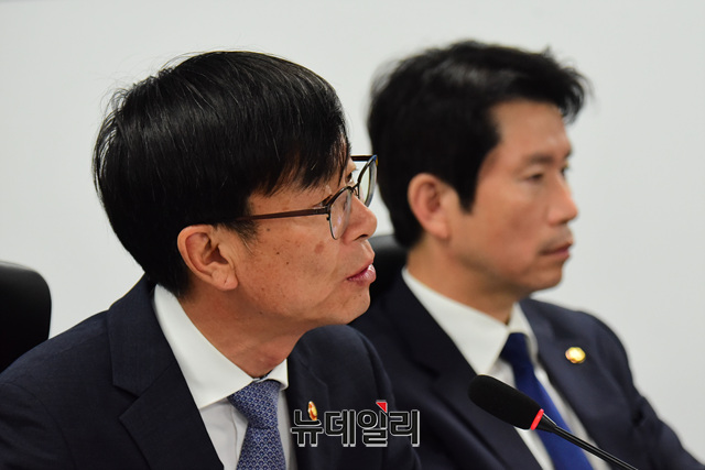 김상조 공정거래위원장이 28일 오후 국회 의원회관에서 열린 '장기점포의 안정적 운영을 위한 가이드라인 발표 및 상생 협약식'에서 인사말을 하고 있다.