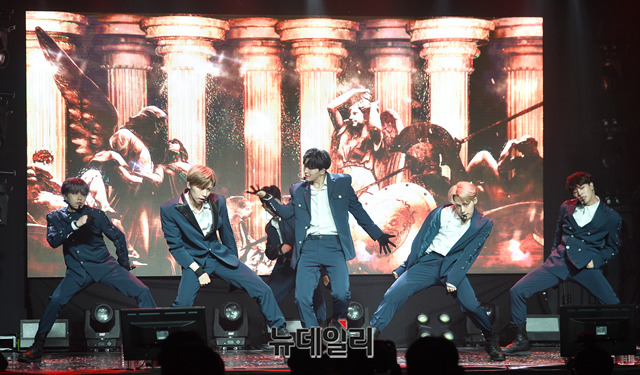 [포토] 신곡 '태양이 떨어진다' 선보이는 '원어스'