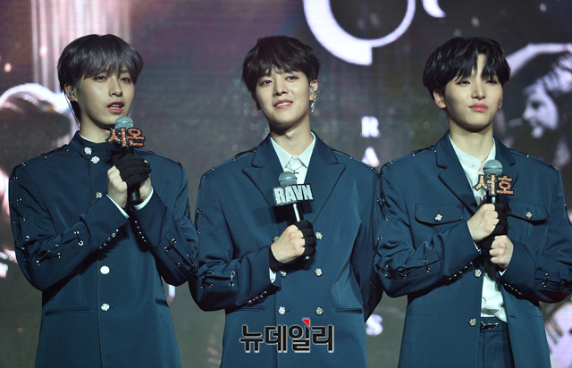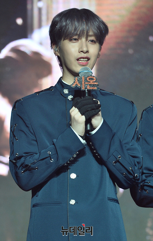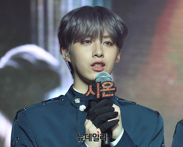 아이돌그룹 '원어스(ONEUS)' 시온이 29일 오후 서울 마포구 무브홀에서 열린 2번째 앨범 'RAISE US(라이즈 어스)' 쇼케이스에서 인사말을 하고 있다.