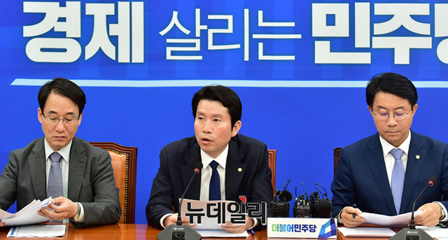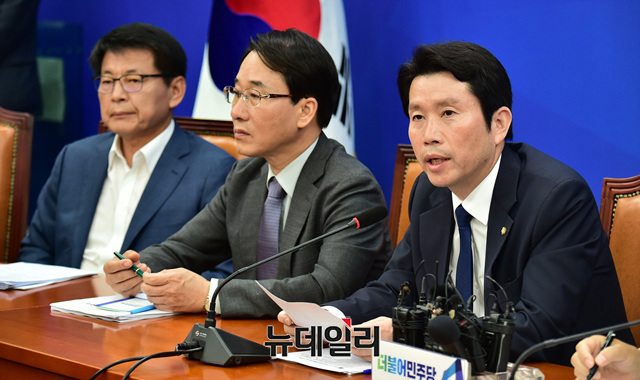 이인영 더불어민주당 원내대표가 30일 오전 국회에서 열린 정책조정회의에 참석해 모두발언을 하고 있다.