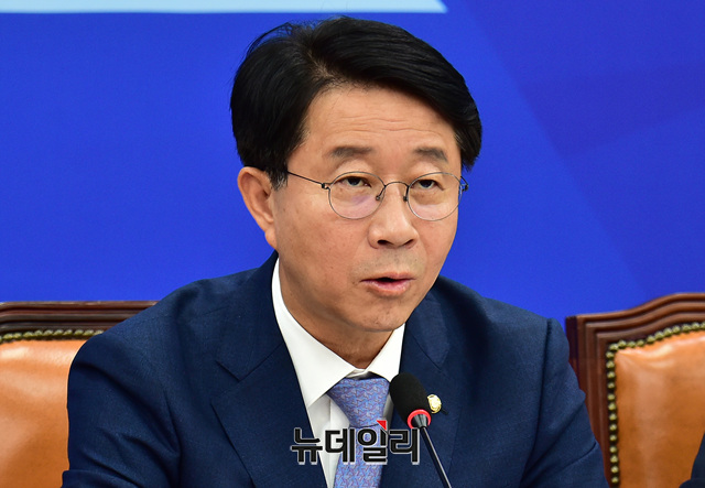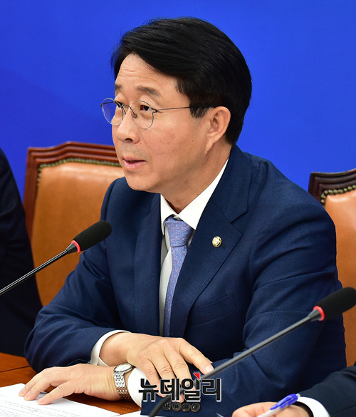 조정식 더불어민주당 정책위의장이 30일 오전 국회에서 열린 정책조정회의에 참석해 모두발언을 하고 있다.