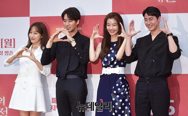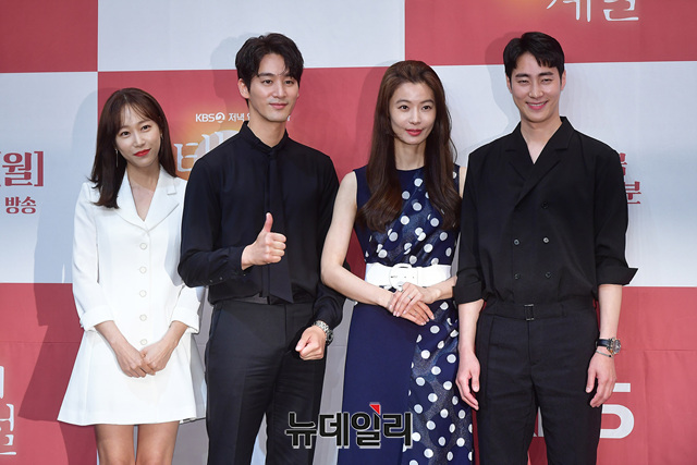 배우 하시은(왼쪽부터), 오창석, 윤소이, 최성재가 30일 오후 서울 구로구 라마다 서울 신도림에서 열린 KBS 2TV 새 저녁 일일드라마 '태양의 계절(극본 이은주, 연출 김원용)' 제작발표회에서 포토타임을 갖고 있다.