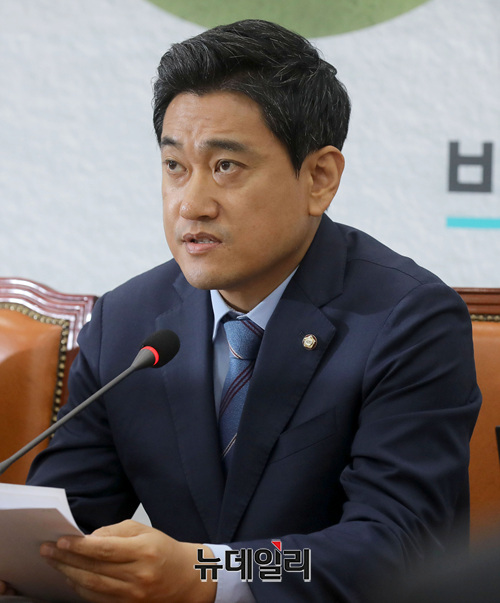 오신환 바른미래당 원내대표가 31일 오전 국회에서 열린 최고위원회의에 참석해 모두발언을 하고 있다.