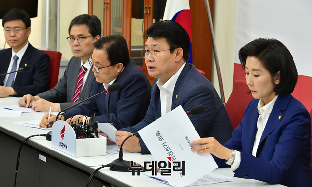 정용기 자유한국당 정책위의장이 31일 오전 국회에서 열린 국정원 관권선거 의혹 대책위원회 회의에서 모두발언을 하고 있다.