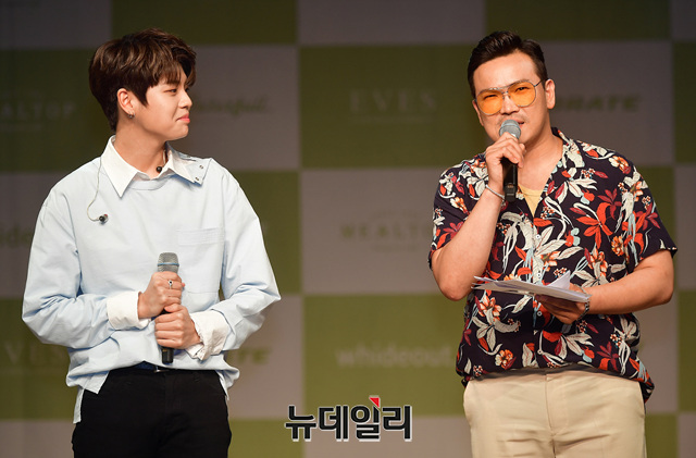 MC딩동이 31일 오후 서울 강남구 일지아트홀에서 열린 지진석 1번째 싱글앨범 'Good Night(굿나잇)' 쇼케이스에서 지진석을 소개하고 있다.