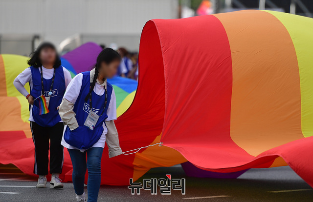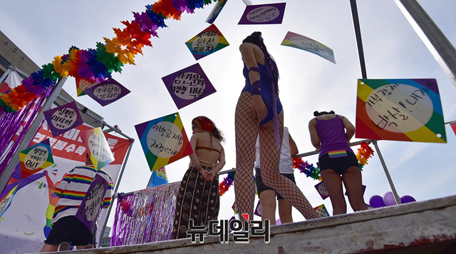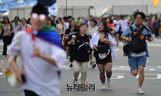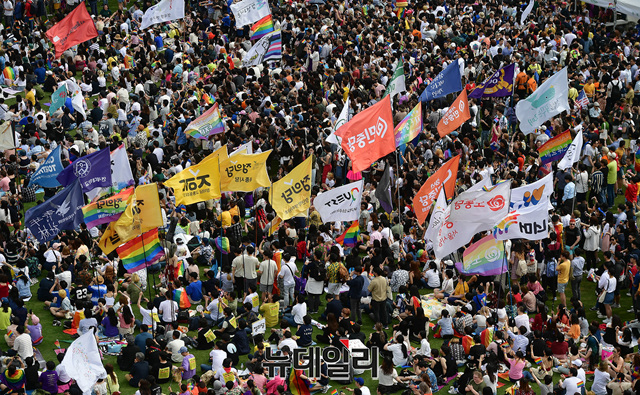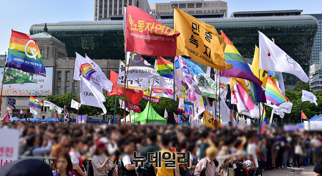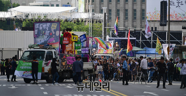 동성애자 등 성소수자와 이를 지지하는 사람들의 모임인 서울퀴어퍼레이드가 1일 오후 서울 중구 서울광장에서 진행되고 있다. 퀴어 퍼레이드는 서울광장에서 출발해 서울도심을 돌아 서울광장으로 복귀했다.