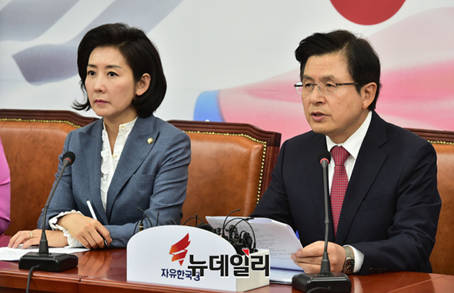 황교안 자유한국당 대표가 3일 오전 국회에서 열린 최고위원회의에서 모두발언을 하고 있다.