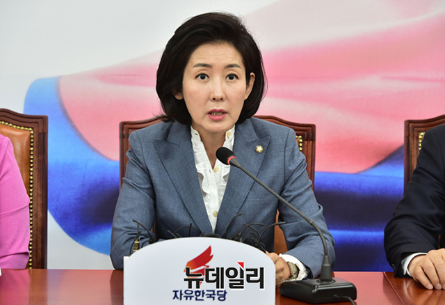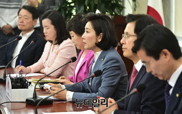 나경원 자유한국당 원내대표가 3일 오전 국회에서 열린 최고위원회의에서 모두발언을 하고 있다.