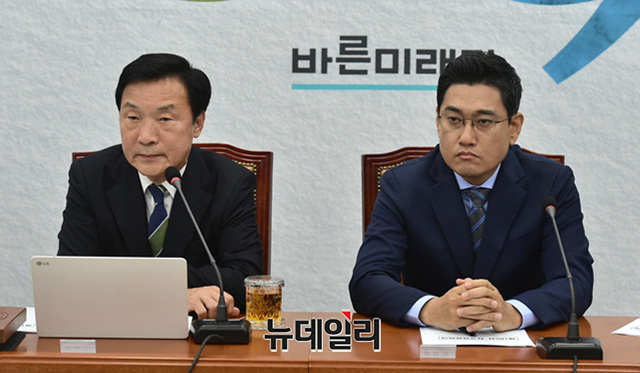 손학규 바른미래당 대표와 오신환 원내대표가 3일 오전 국회에서 열린 최고위원회의에서 참석해 앉아 있다.