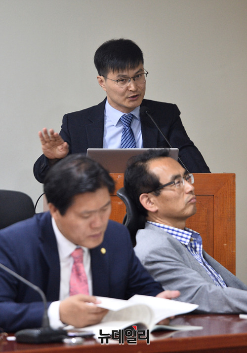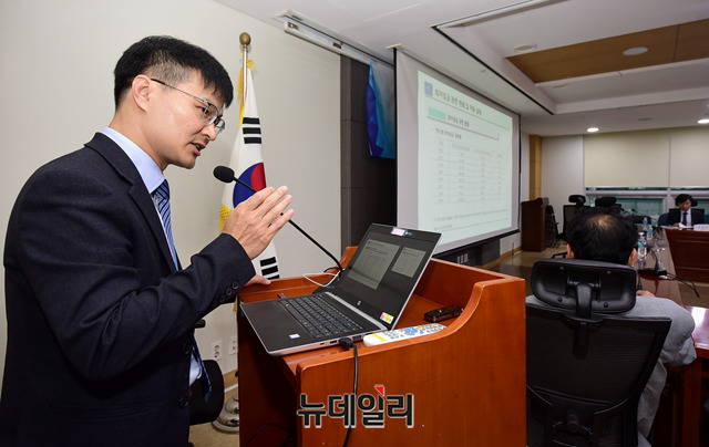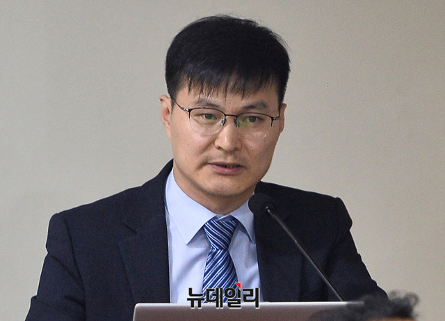 라정주 파이터치연구원장이 4일 오후 국회 의원회관에서 열린 '플랫폼 자유와 공화'가 주최한 경제비전 콘서트에서 '최저임금과 52시간제 출구전략'을 주제로 발언을 하고 있다.