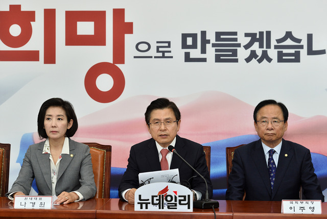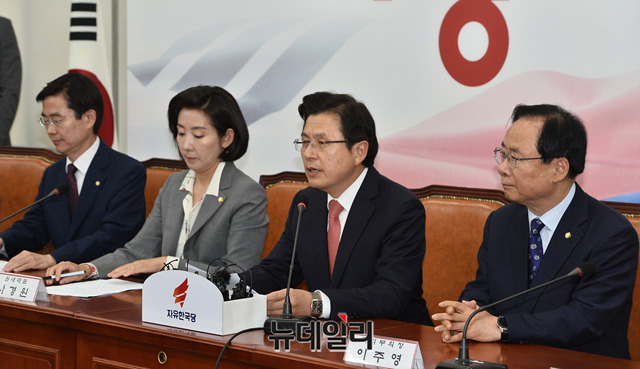 황교안 자유한국당 대표가 5일 오전 국회에서 열린 당대표 및 최고위원·중진의원 연석회의에서 모두발언을 하고 있다. 황 대표는 "국민 마음에 상처를 주고, 신뢰를 떨어뜨리는 언행이 나온다면 엄정하게 책임을 물을 것"이라고 밝혔다.