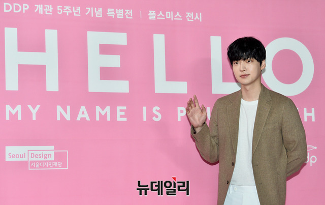 배우 안재현이 5일 오후 서울 중구 동대문디자인플라자에서 열린 '헬로, 마이 네임 이즈 폴 스미스(HELLO, MY NAME IS PAUL SMITH)' 전시 오픈 행사에서 포토타임을 갖고 있다.